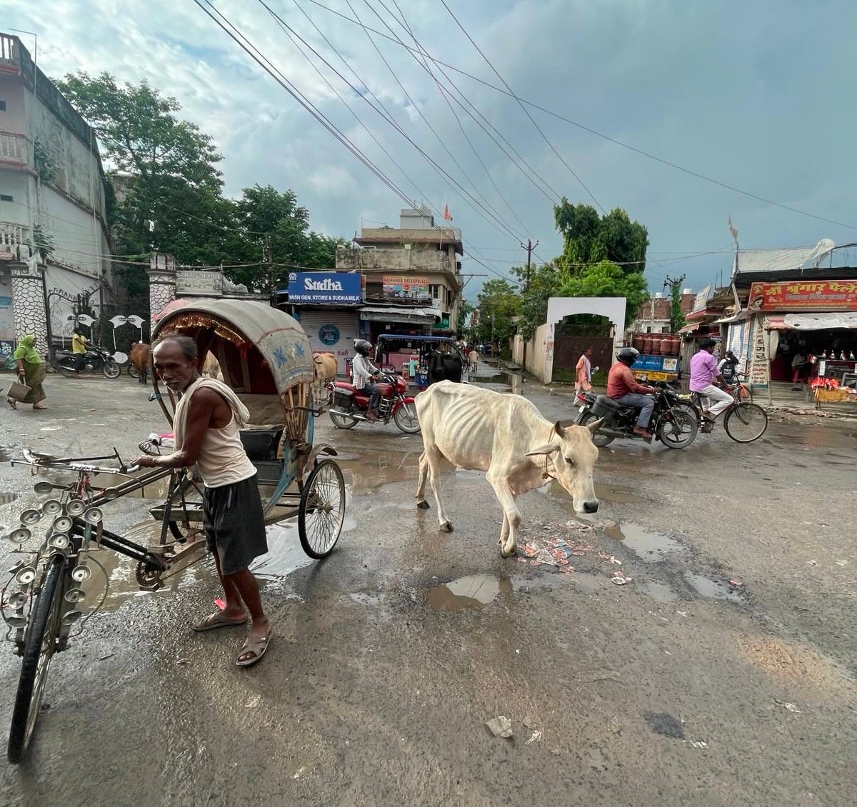 I can’t say that Muzaffarpur impressed me. It is Bihar’s fourth-largest city by population, but this doesn’t mean much: 90 percent of Biharis live in the countryside, and Muzaffarpur is thought to have only about 500,000 people. In appearance Muzaffarpur is very much a classic poor Indian city. There was a lot of trash, a lot of half-constructed buildings of shoddy quality, and a few wretched-looking animals roaming around. We were there during monsoon season and it had been raining heavily, which made everything muddy and gave the city an air of shabbiness.