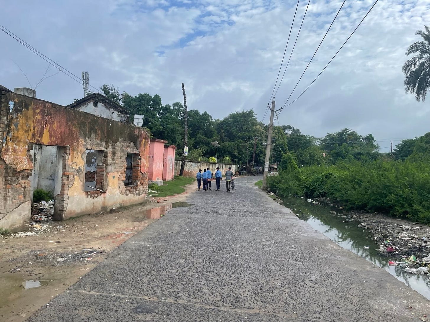 As we were approaching Patna, we saw that the rain of the last few days had caused the water level in a suburb of the city called Rukanpura to reach to the level of the doors. The flooding of the last few days had apparently displaced a hundred thousand people.